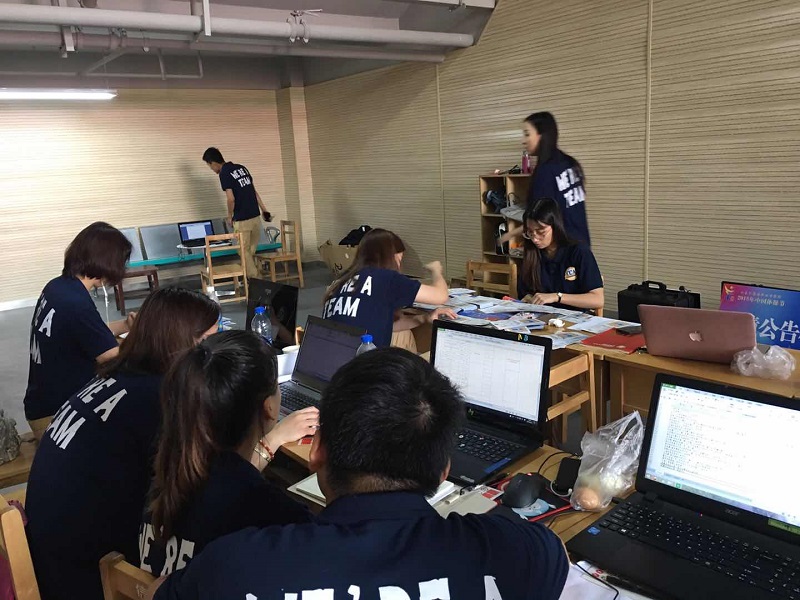 体操节前夕奋力准备的CCA工作人员。