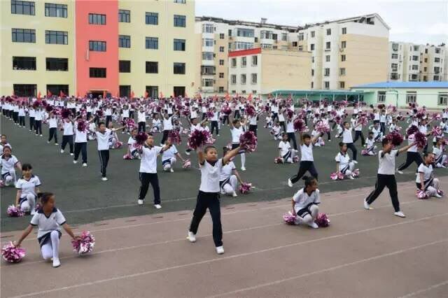 3.全校展示小学组内蒙啦啦操花球规定套路
