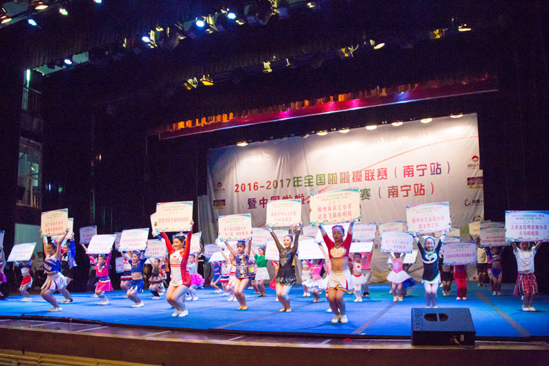 6月10日11:30分,由国家体育总局体操运动管理中心、中国大学生体育协会、中国中学生体育协会共同主办,由全国啦啦操委员会、南京新恒鼎体育推广有限公司、广西啦啦操委员会共同承办的2016-2017年全国啦啦操联赛(南宁站)暨中国啦啦之星争霸赛(南宁站)在广西幼儿师范高等专科学校隆重开幕。