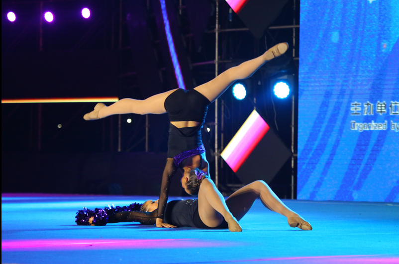 比赛现场,运动员把街舞啦啦操本身的活泼与动感相结合,让裁判们刮目相看;爵士啦啦操项目,节奏时而温婉、时而动感,加之其高难度的动作与视觉效果所带来的震撼效果,将比赛气氛推向高潮。